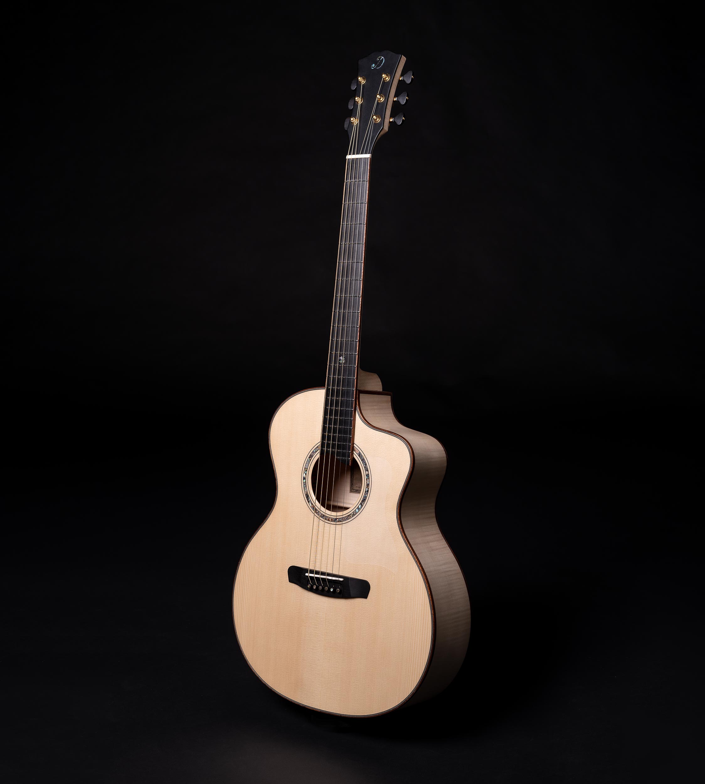 The combination of maple and spruce, used in violin making for over 400 years, is acoustically exceptional and in demand, especially by fingerstyle players. If you are looking for a bright and clear ringing sound, the Acero is the right choice.