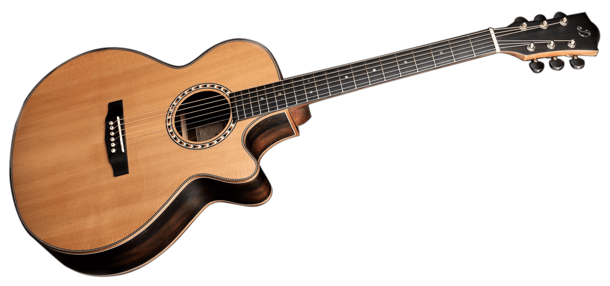 With its elegant design and detailed craftsmanship, the Danubius is one of the bestsellers our solid-top Antique series. The selection of its top plate material and shape is up to you, whether you like the robust sound of Cedar or the precise tonal quality of Spruce, is up to you. Macassar Ebony back and sides add nice basses and unique visual qualities.
